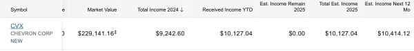 Mein Favorit ist Chevron. Warum nicht Exxon? Weil Chevron traditionell die sauberste Bilanz im Sektor hat. Der Verschuldungsgrad ist extrem niedrig. Das Management ist diszipliniert und wirft das Geld nicht für überteuerte Projekte zum Fenster raus. Ich habe die Chevron-Aktie seit 16 Jahren im Depot und kaufe jedes Quartal über die Dividenden weitere Aktien zu. Es ist aus dem Schneeball eine Lawine geworden. Allein im laufenden Jahr habe ich 10.127 Dollar an Dividenden kassiert. Es wird immer mehr.