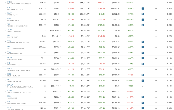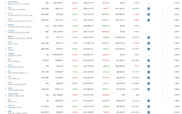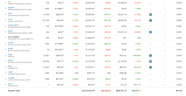 • Ich gebe zu: Selbst wenn sich ein 300-Dollar-Investment verzehnfacht, bewegt das bei 3,6 Millionen Dollar die Nadel nicht. Solche Kleinstpositionen binden jedoch Aufmerksamkeit. „Ein Frühjahrsputz, bei dem Positionen unter 0,1% oder 0,2% liquidiert werden, würde das Depot deutlich übersichtlicher machen“, höre ich oft von Kritikern. Ach, ich kann mit diesen Zwergen gut leben.