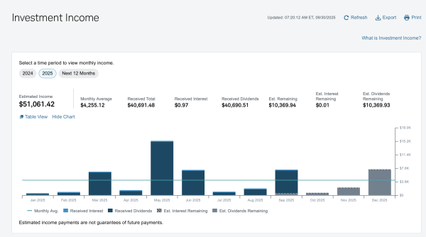 Ich habe nie einen Schwerpunkt auf Dividenden gelegt, dennoch kassiere ich heute pro Jahr 51.000 Dollar an Dividenden. Allein von diesen passiven Einnahmen kann ich fast leben: