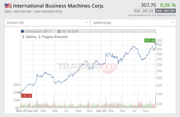 Die IBM-Aktie ist jetzt über die 300-Dollar-Marke ausgebrochen und hat sich in den vergangenen zwei Jahren verdoppelt. IBM ist ein super Dividendenaristokrat. 10 Jahre lang ging es nur seitwärts mit dem Papier, endlich geht es aufwärts.