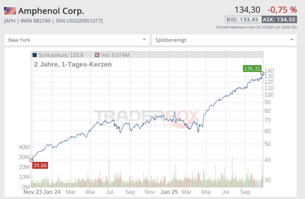 Amphenol, der Spezialist im Bereich Steckverbindungen, ist ein echter Dauerläufer – die Aktie eilt von einem Hoch zum nächsten.