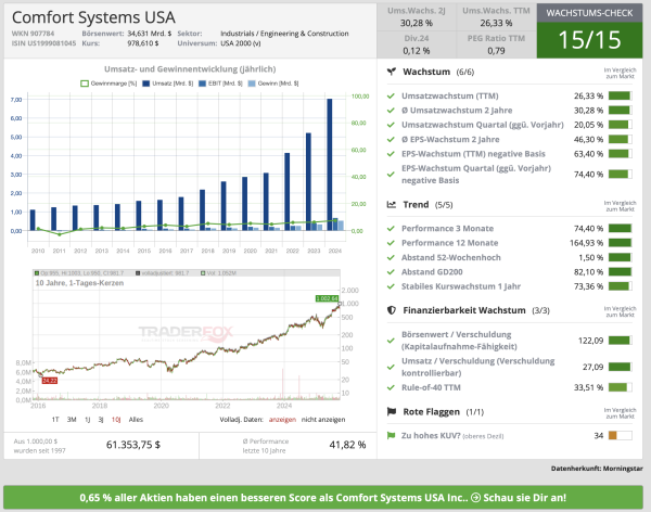 Im Wachstums-Check von Traderfox erhält die Aktie eine 15 von 15 Bewertung.