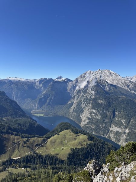 Hier bin ich mit meinem WG-Mitbewohner auf den Jenner gewandert. Von hier hat man einen super Blick auf den Watzmann und den Königssee.