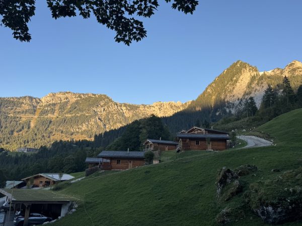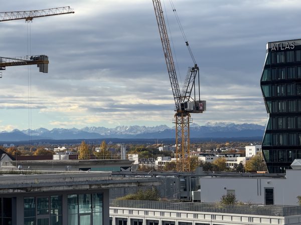 Von der Dachterasse hatte man einen super Blick auf die schneeüberzogenen Alpen.