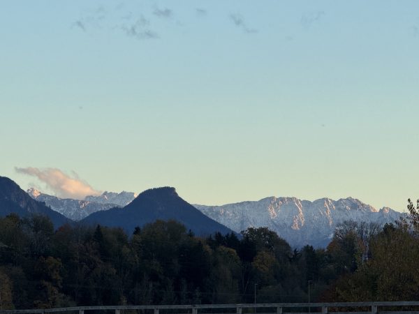 Hier ein Blick von Rosenheim ins Kaisergebirge. Es kam der erste Schnee.