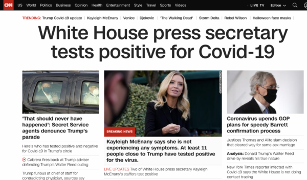 Chaostage im Weißen Haus. Immer mehr Mitarbeiter des Präsidenten erkranken an Covid-19 (Bildschirmfoto von CNN.com).