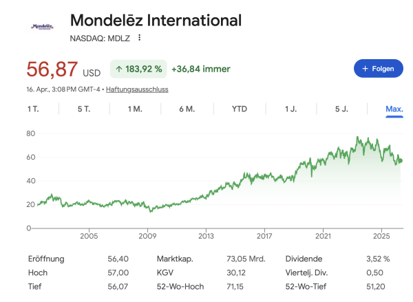 Wer bei Oreo, Milka oder Toblerone an Diätpillen denkt, hat den globalen Konsumenten nicht verstanden. Mondelez wächst besonders stark in den Schwellenländern. Wenn dort die Mittelschicht wächst, ist einer der ersten kleinen Luxusartikel, den sich die Menschen gönnen, ein verpackter Marken-Snack. Mondelez hat eine hervorragende Stellung im Markt und wächst strukturell oft schneller als die Konkurrenz. Der jüngste Kursrückgang bietet die Chance, sich diesen Wachstumstreiber zu einem vernünftigen Preis ins Depot zu legen.