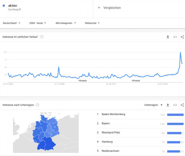 Die Anleger scheinen zumindest auf Google begeistert nach den „besten Aktien“ zu suchen.