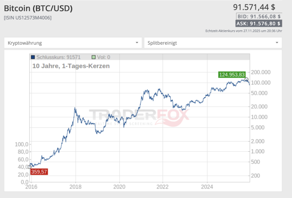 Der Bitcoin ist in den letzten zehn Jahren um 20.500 Prozent gestiegen – nur Nvidia verzeichnete eine noch höhere Rendite. Seit 2009 ist der Bitcoin sogar um über eine Milliarde Prozent gestiegen.