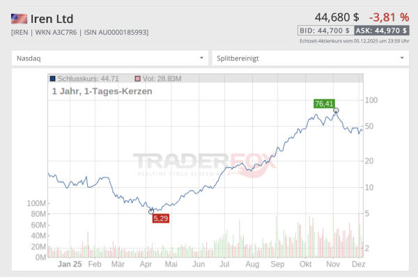 Die IREN-Aktie ist meine zweitschlechteste Aktie mit einem Verlust von minus 26%. Ich habe die Aktie im November gekauft.