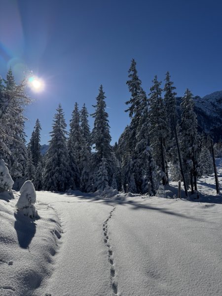 Danach sind wir auf den Grünstein gewandert, es war teilweise sehr tiefer Schnee.