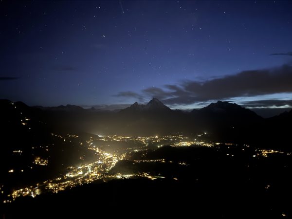 Gestern war ich mit meinen WG-Mitbewohnern auf der Kneifelspitze bei Nacht. Es war eine super Stimmung und ein riesiges Lichtermeer. Ich schaute auf Berchtesgaden und den Watzmann. Auf der anderen Seite liegt Salzburg, einer meiner absoluten Lieblingsorte in der Region.