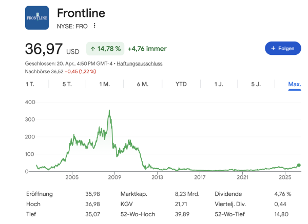 Kurzfristige Zyklik vs. Langfristige Substanz Der aktuelle Boom bei Frontline ist das klassische Resultat eines geopolitischen Schocks. Die Gewinne sprudeln, solange der Engpass in der Straße von Hormus besteht. Sobald sich die Lage jedoch diplomatisch oder militärisch entspannt und die eingeschlossenen Schiffe den Weltmarkt wieder fluten, dürften die Frachtraten – und damit höchstwahrscheinlich auch der Aktienkurs – korrigieren.