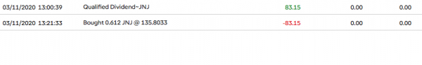 Ich habe heute für 1.500 Dollar Chevron-Aktien nachgekauft. Außerdem ein paar Exxon und Johnson & Johnson. Alle drei Aktien sind Dividendenaristokraten, die seit über 25 Jahren in Folge ihre Ausschüttung je Aktie hochgefahren haben. Das sind meine Zukäufe von heute: