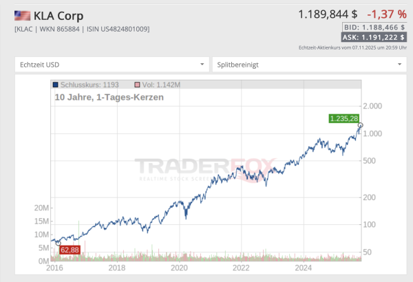 Als Beispiel lege ich mal den Chart von KLA neben dem von Adobe. Hier zeigt sich ein hervorragender Chart, welcher die enorme Qualität unterstreicht. Solche Dauerläuferaktien finde ich super im Depot und dazu gehört auch die Amphenol-Aktie die ich für Church & Dwight gekauft habe.
