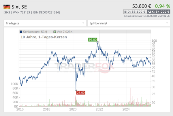 Seit rund 8 Jahren hat die Sixt-Aktie keine wirkliche Rendite erzielt, die Aktie verläuft über mehrere Jahre hinweg seitwärts.