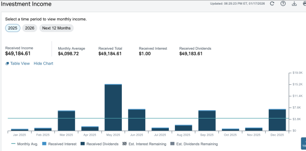 Im Jahr 2026 ist mein Depot gefüllt mit Unternehmen, die solide arbeiten, statt nur große Versprechungen zu machen. Keine wilden Zockereien. Stattdessen: Substanz. 2025 habe ich. 49.000 Dollar an Dividenden kassiert. Und im laufenden Jahr dürften es deutlich über 50.000 Dollar werden. Ich lebe aber zur Zeit von meinen Einnahmen als freier Journalist, Blogger und Vermieter. Die Dividenden stecke ich zurück in den Aktienmarkt, weil ich sie nicht brauche. Ich kann aber jederzeit mit ihnen in die Freiheit gehen, wobei ich mehrere Einnahmequellen vorziehe, um abgesichert zu sein.