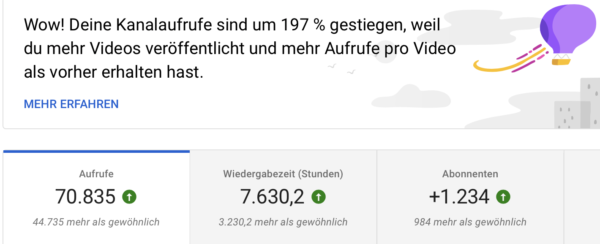 Herzlichen Glückwunsch und vielen Dank für deine Arbeit. Gerade in der Corona Krise war deine ruhige zuversichtliche Art wunderbar. Ich schaue mir sehr gerne deine Videos an und finde sie total klasse! Danke und bitte weiter so???