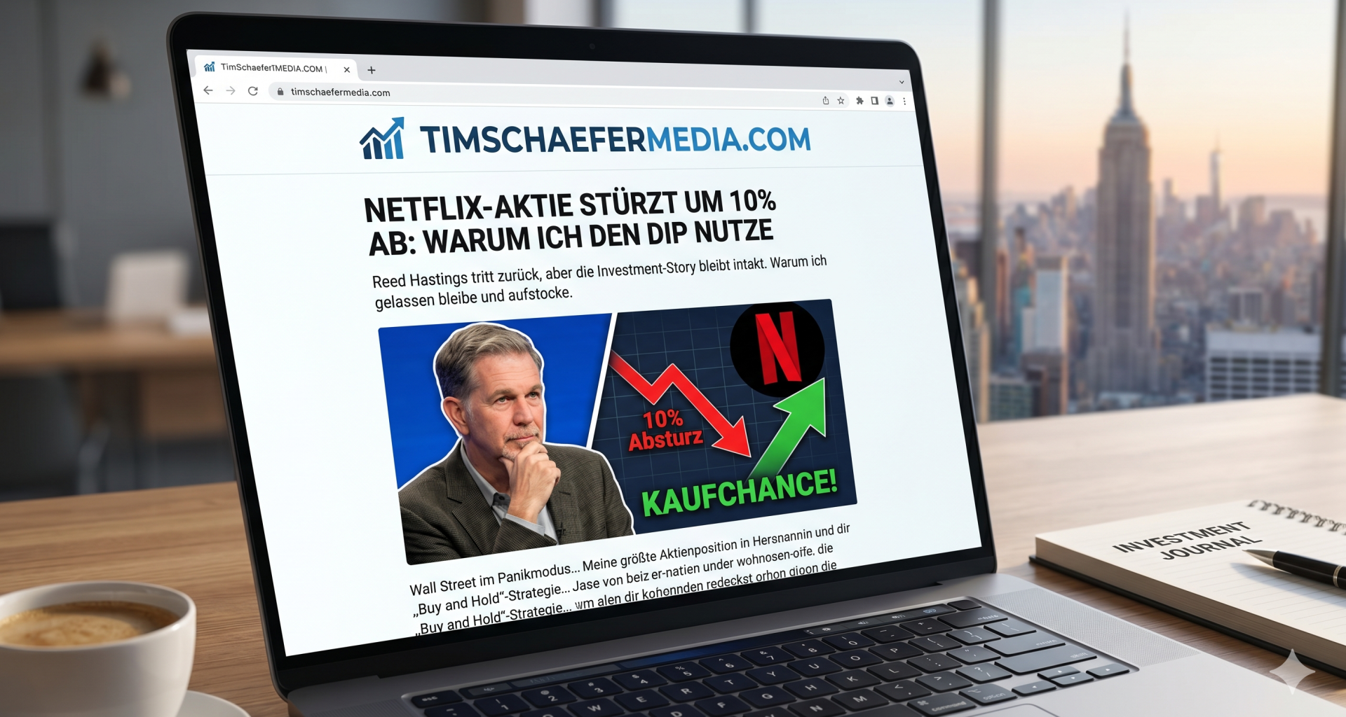 Netflix ist meine größte Aktienposition. Werde ich nach diesem Absturz schwach? Absolut nicht. Mein Ansatz auf timschaefermedia.com war und ist immer „Buy and Hold“. Wir kaufen herausragende Unternehmen und lassen sie liegen – über alle Marktzyklen hinweg. Reed Hastings hat ein gigantisches Streaming-Imperium aufgebaut, das den Medienkonsum weltweit revolutioniert hat. Sein Rückzug aus der ersten Reihe ändert rein gar nichts an dem fundamental starken Geschäftsmodell, der immensen Preissetzungsmacht und der gewaltigen Abonnentenbasis, die das Unternehmen besitzt. Die Strukturen stehen, und das verbleibende Management-Team ist bestens eingespielt. Schwachpunkte hat jedes Unternehmen mal in einem Quartal.