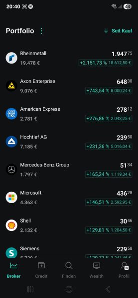 Simon aus Berlin hat etwas erstaunliches geschafft. Er hat in wenigen Jahren ein Depot von mehr als 250.000 Euro aufgebaut. Zu seinen Highflyern gehören Rheinmetall und Axon Enterprise. Auf einem Screenshot kannst du beide Aktien stark im Plus sehen. Rheinmetall steht über 2.000% im positiven Bereich, wow! Ich war mit Hans A. Bernecker einer der ersten, die Simon auf YouTube entdeckt hat. „Ich verfolge dich seit meiner gesamten Zeit an der Börse. Vielen Dank für deine Videos.“