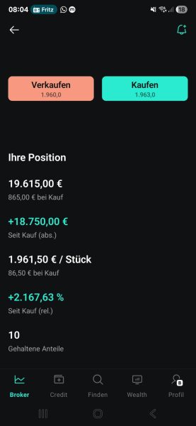 Mittlerweile bin ich geduldiger geworden. Meine erfolgreichste Position ist Rheinmetall. Zehn Aktien befinden sich in meinem Depot. Kaufpreis je Aktie 86,50 Euro. Derzeit liegt die Position zeitweise über 1.900 Euro je Aktie und damit 2.000 Prozent im Plus.