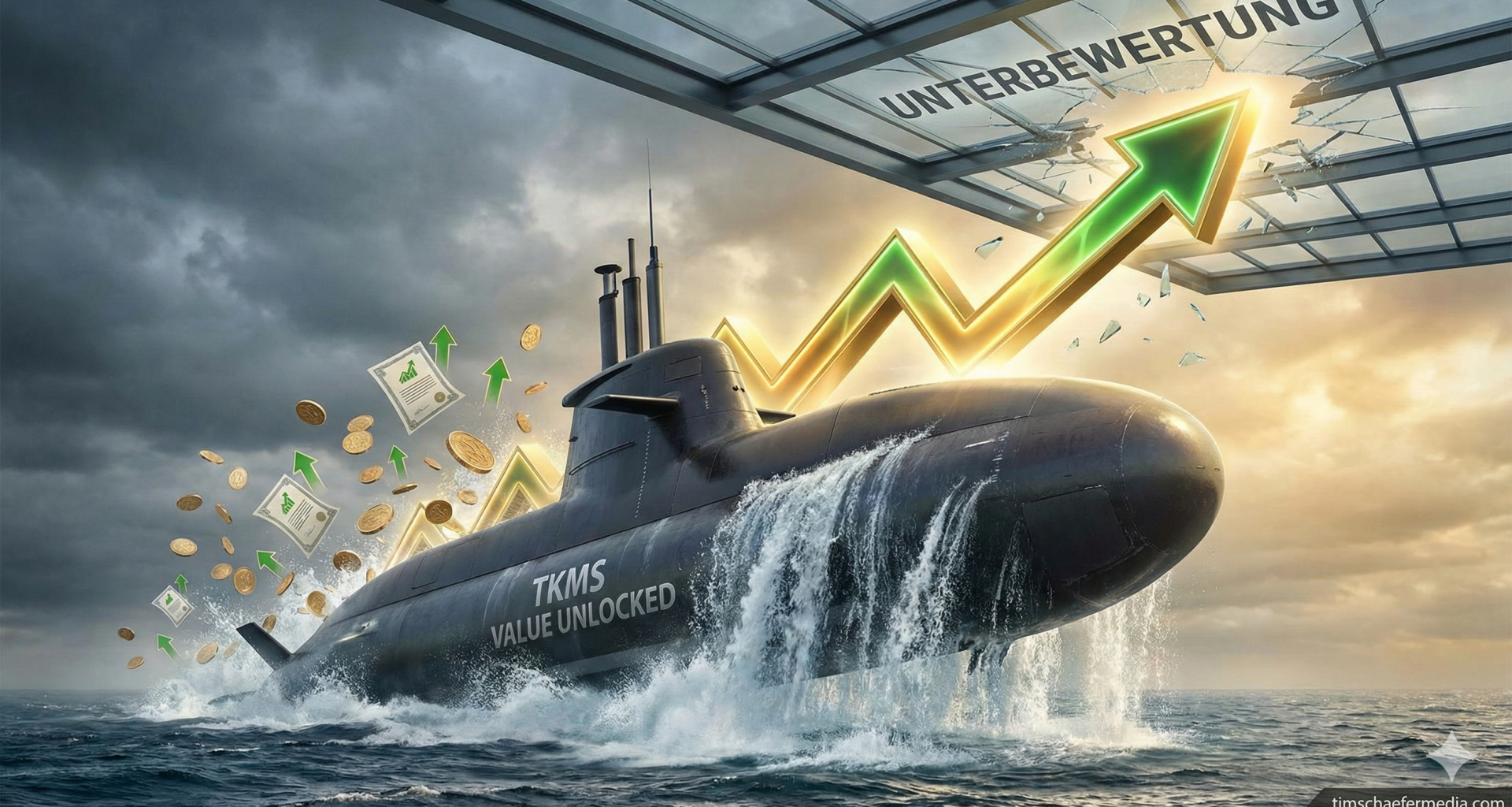 TKMS steht für „Thyssenkrupp Marine Systems“. Von der grauen Maus scheint die Aktie jetzt zum Rüstungs-Star zu werden. Warum Anleger ganz genau auf die U-Boot-Sparte von Thyssenkrupp schauen sollten, an der der Mutterkonzern noch 51% hält. Warum die Aktie unterschätzt wird? Wer an Thyssenkrupp denkt, denkt oft an alte Industrie, volatile Stahlpreise und endlose Restrukturierungen. Die Aktie der Muttergesellschaft (Thyssenkrupp AG) war in den letzten Jahren wahrlich kein Spaß für Buy-and-Hold-Anleger. Aber: In diesem Konglomerat schlummert ein Schatz, der bisher vom Markt nicht annähernd fair bewertet wird.