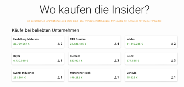 Vorstände und Aufsichtsräte kennen ihre Unternehmen bis ins kleinste Detail. Wenn sie ihr privates, hart verdientes Geld in die eigene Firma stecken, sollten wir als Privatanleger zumindest hellhörig werden. Aktuell gibt es wieder einige spannende Bewegungen an den Märkten. Ich habe mir die neuesten Daten auf dem Portal insiderkauf.de genauer angesehen.